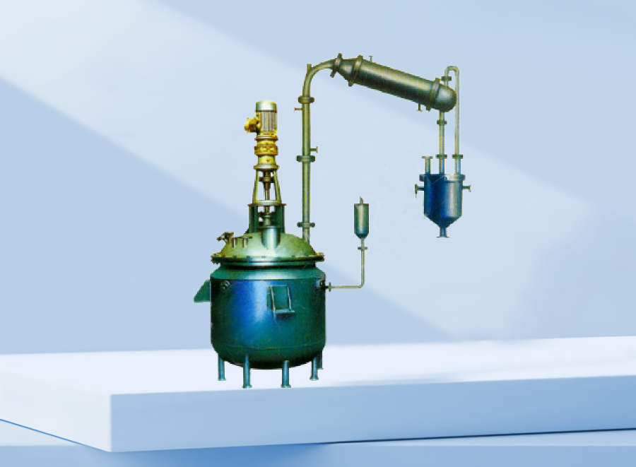 1.反应锅 2.竖式分馏柱 3.竖式冷凝器 4.卧式冷凝器